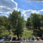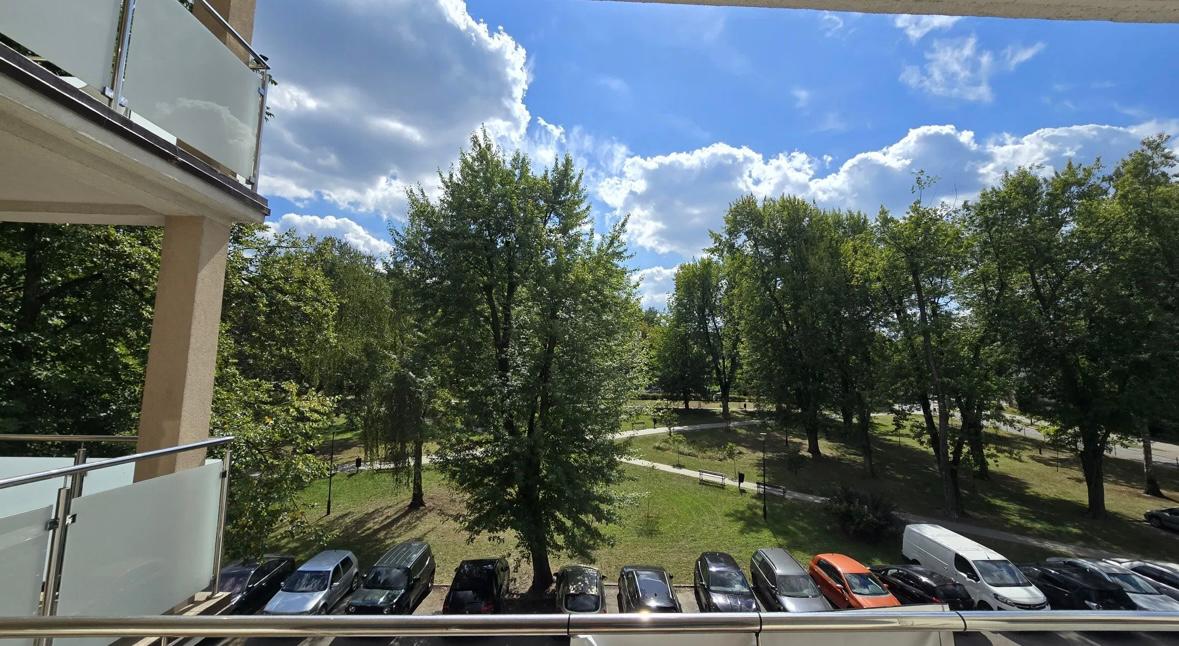 Balkon z widokiem na park – doskonałe miejsce na poranną kawę.